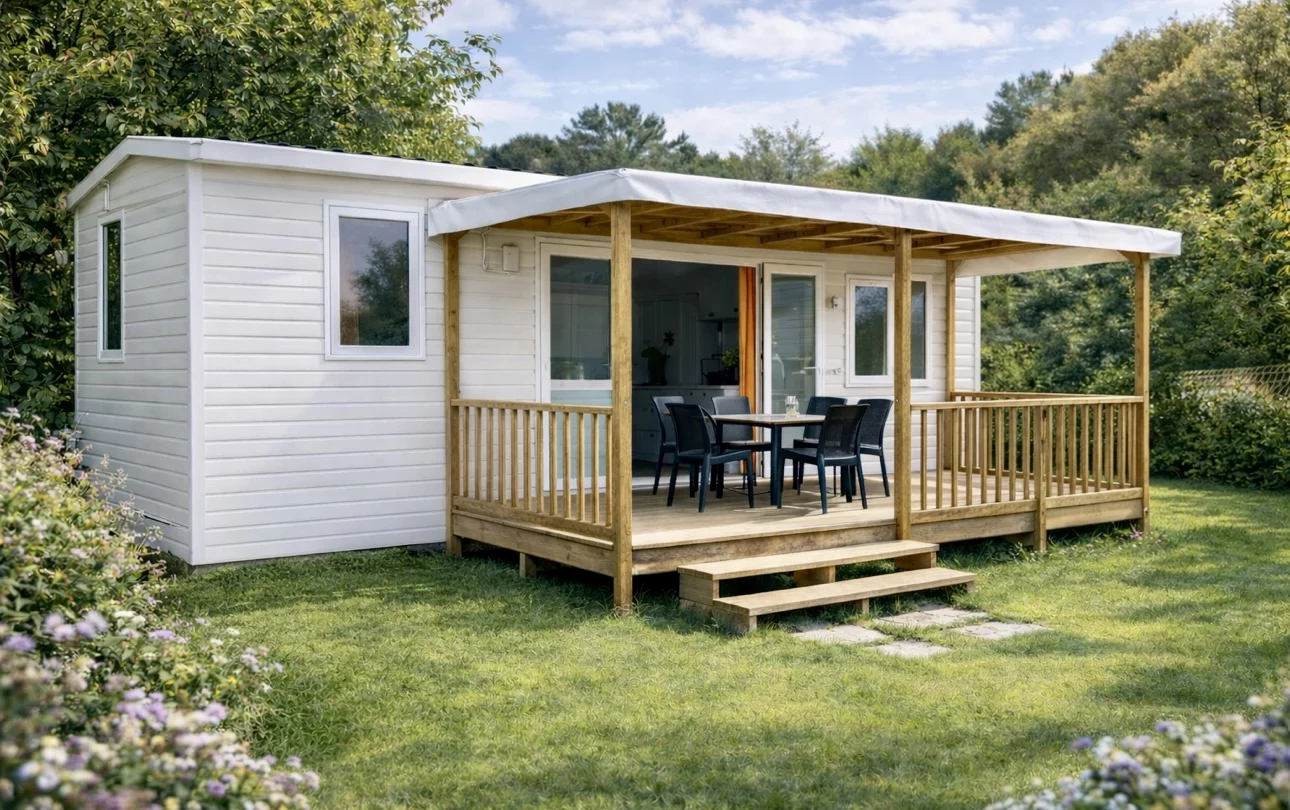 En la familia “alquiler”, encontrarás las casas móviles esenciales Confort y Confort +, diseñadas para 4 a 6 personas (con terraza cubierta), que son un poco más espaciosas y cómodas que los modelos estándar.