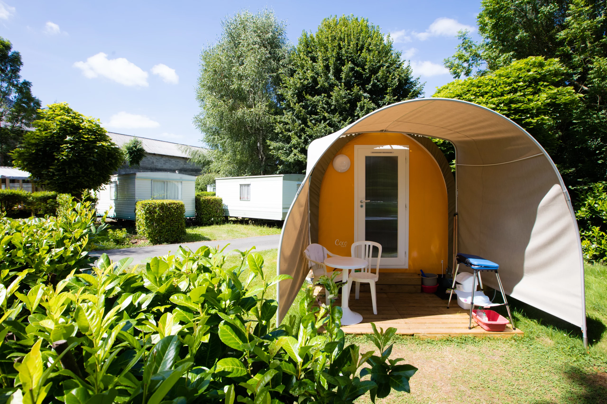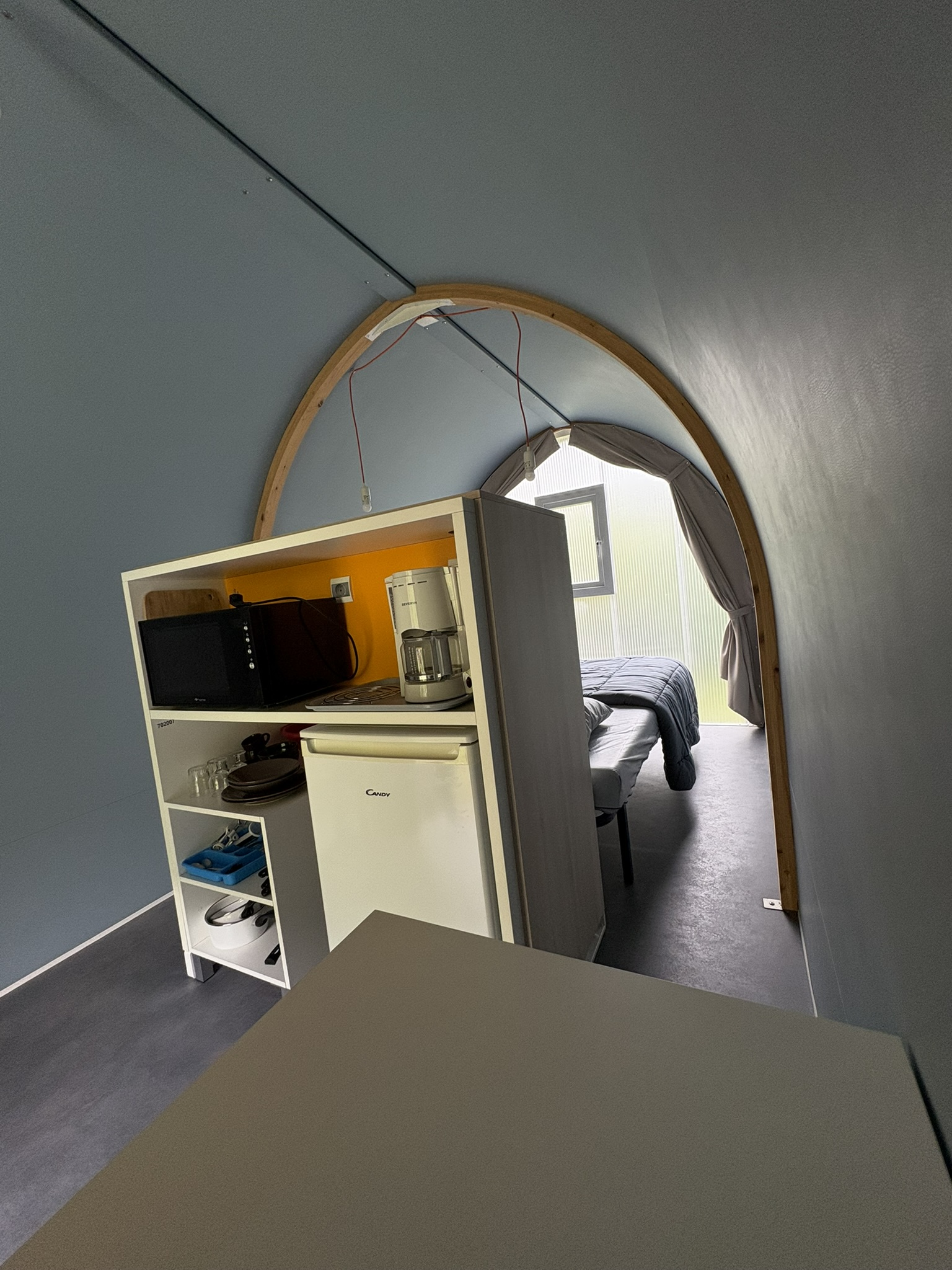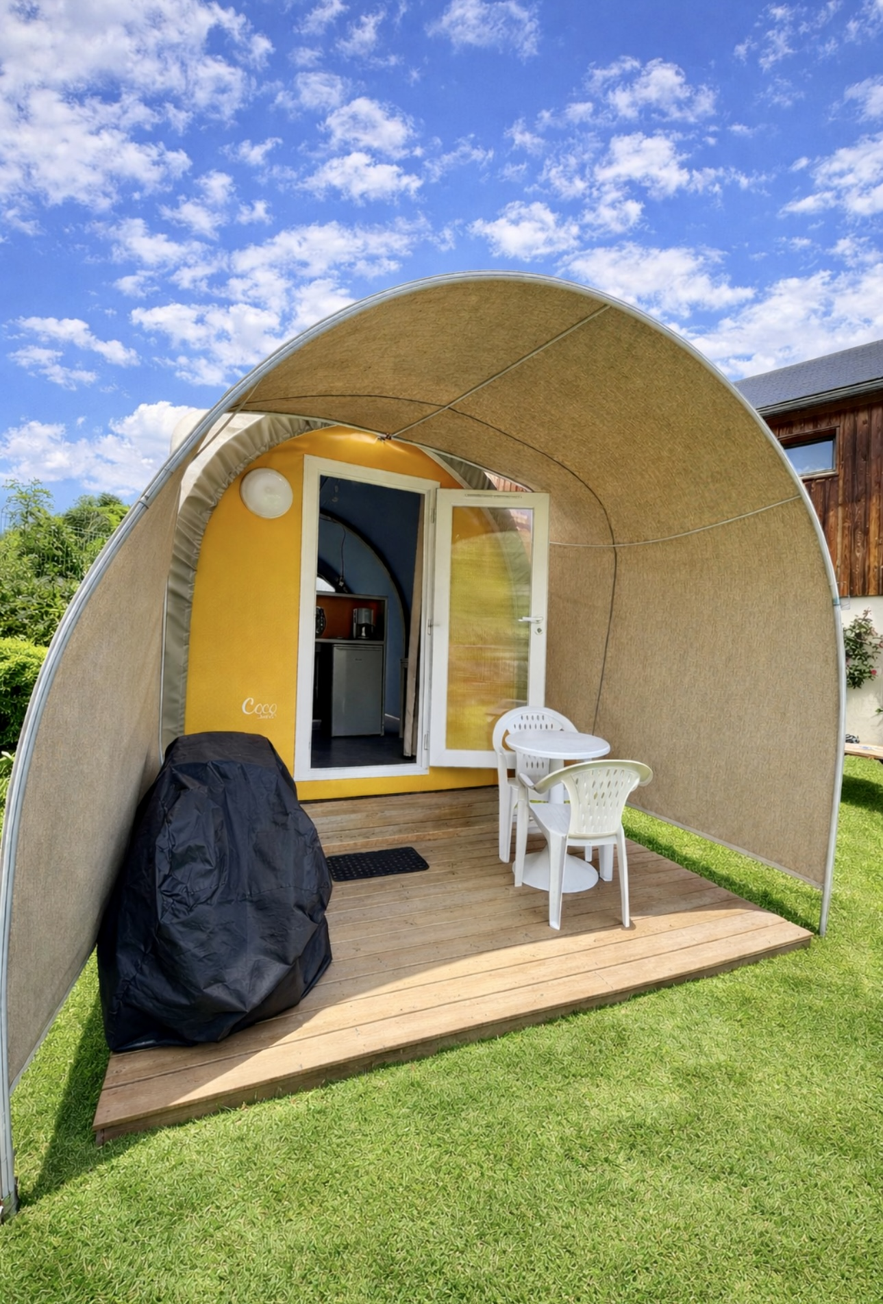 Nuestro Coco Sweet tiene capacidad para 2 personas y está equipado con una cama de 140 cm con edredón y almohadas